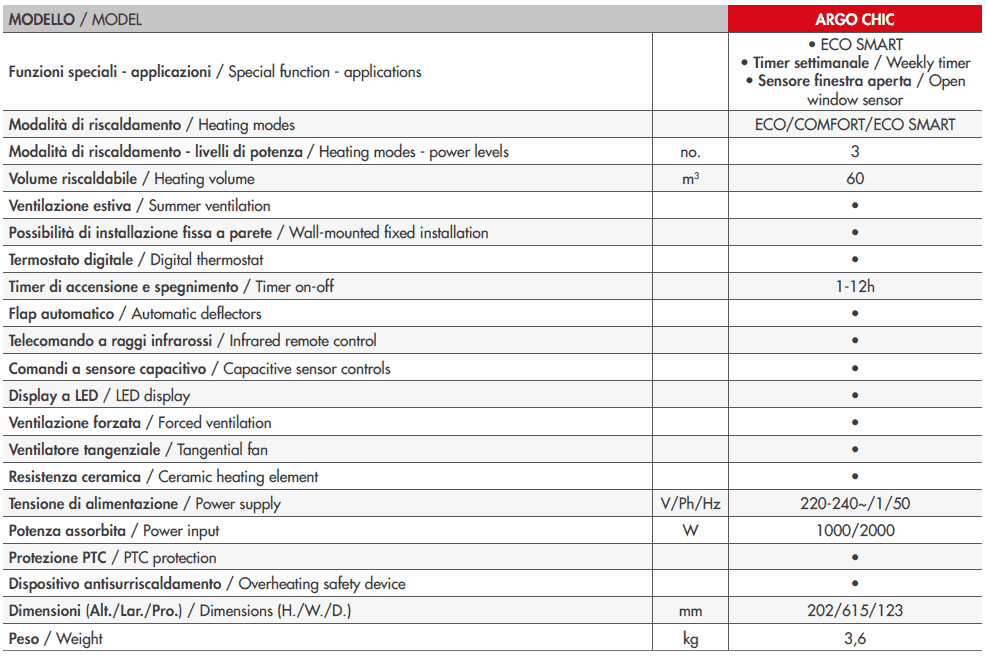 Επιτοίχιο Αερόθερμο Argo Chic Silver 1000/2000W